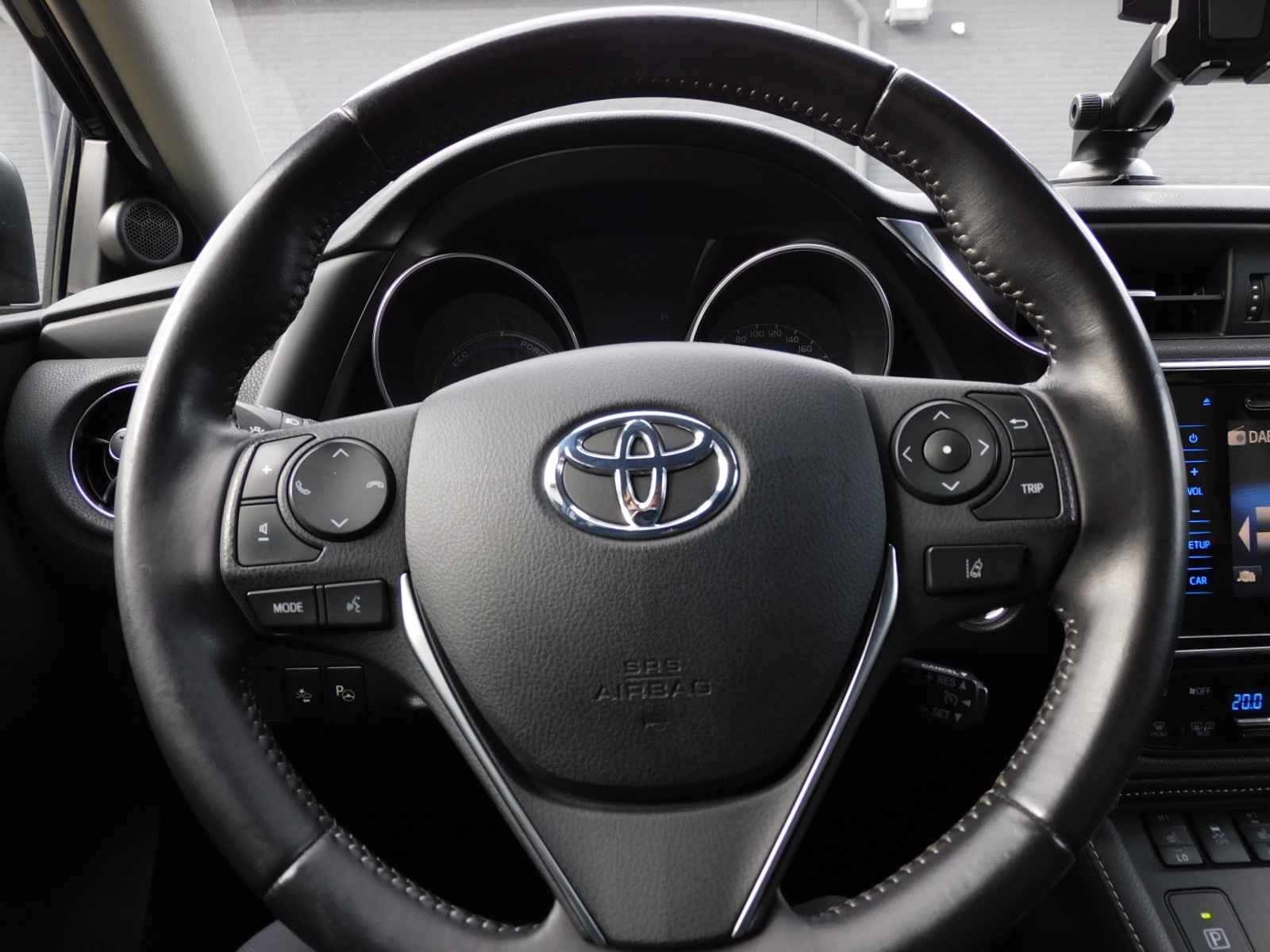 Een vergeten muurtje, een verborgen paaltje? Dat gebeurt niet meer, dankzij de achteruitrijcamera. In deze auto wordt u elke rit opnieuw bijgestaan door een gebruiksvriendelijk full map navigatiesysteem, terwijl u luistert naar het audiosysteem met DAB-radio en usb-aansluiting. De auto is ook uitgevoerd met electronic climate control. De regensensor regelt zelf de optimale snelheid van de ruitenwissers zodat u dat niet zelf hoeft te doen. De cruise control zorgt voor een prettige, gelijkmatige koers en minder brandstofgebruik. De uitrusting van deze Toyota is met keyless entry, automatisch dimmende binnenspiegel, lederen stuur, centrale deurvergrendeling met afstandsbediening en lederen versnellingspook behoorlijk compleet.