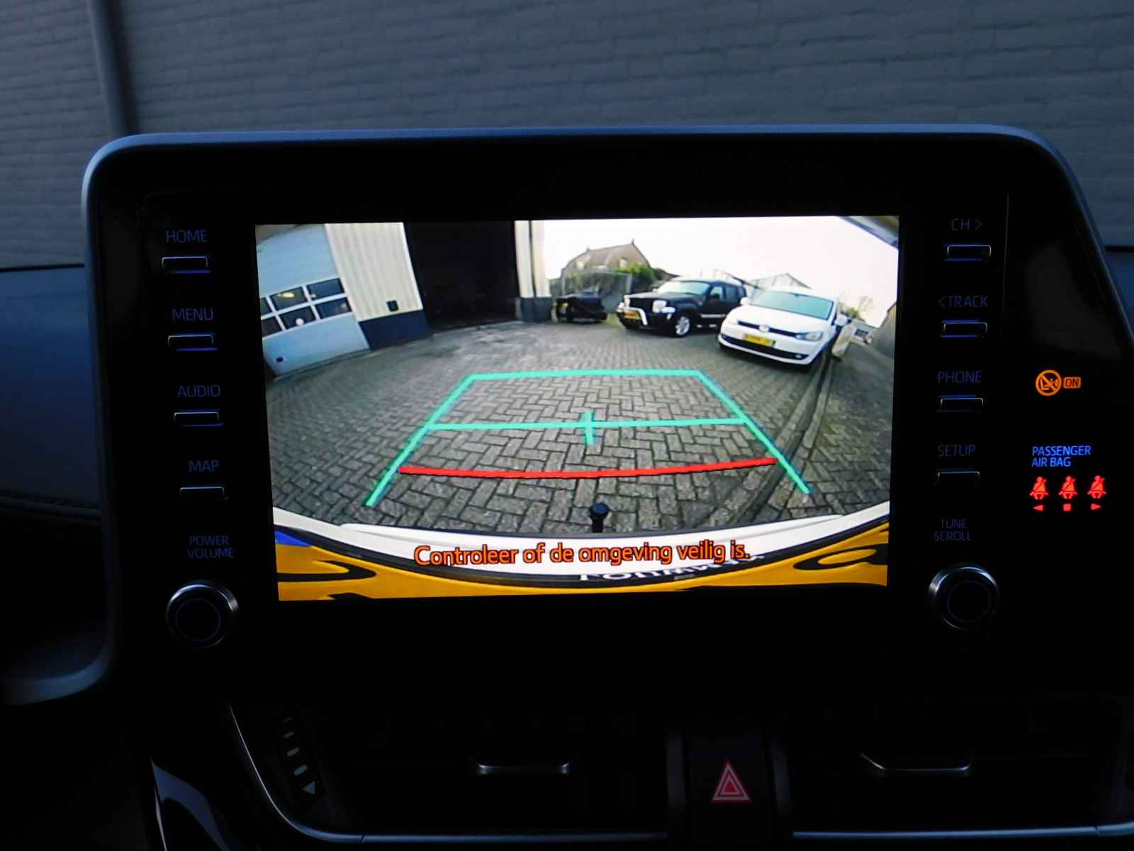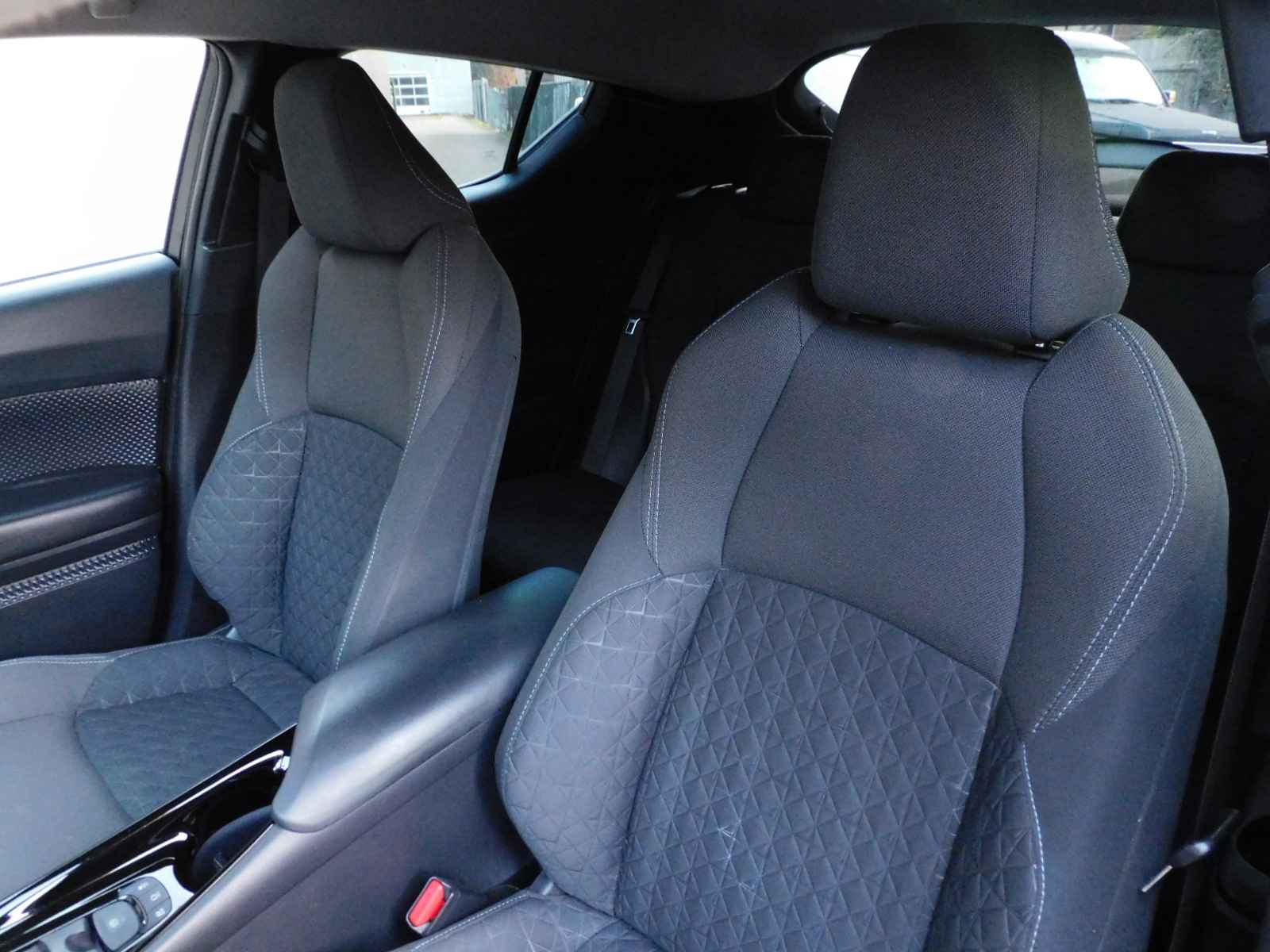 Zoals u mag verwachten van deze Toyota C-HR is hij uitgerust met een reeks aan actieve veiligheidssystemen. De actuele snelheidslimiet, een inhaalverbod en andere verkeersborden. De verkeersborddetectie ondersteunt u tijdens elke rit. Forward collision warning waarschuwt voor een kop-staart botsing. In deze Toyota vinden we verder een hill hold functie, brake assist en bandenspanningcontrolesysteem.
